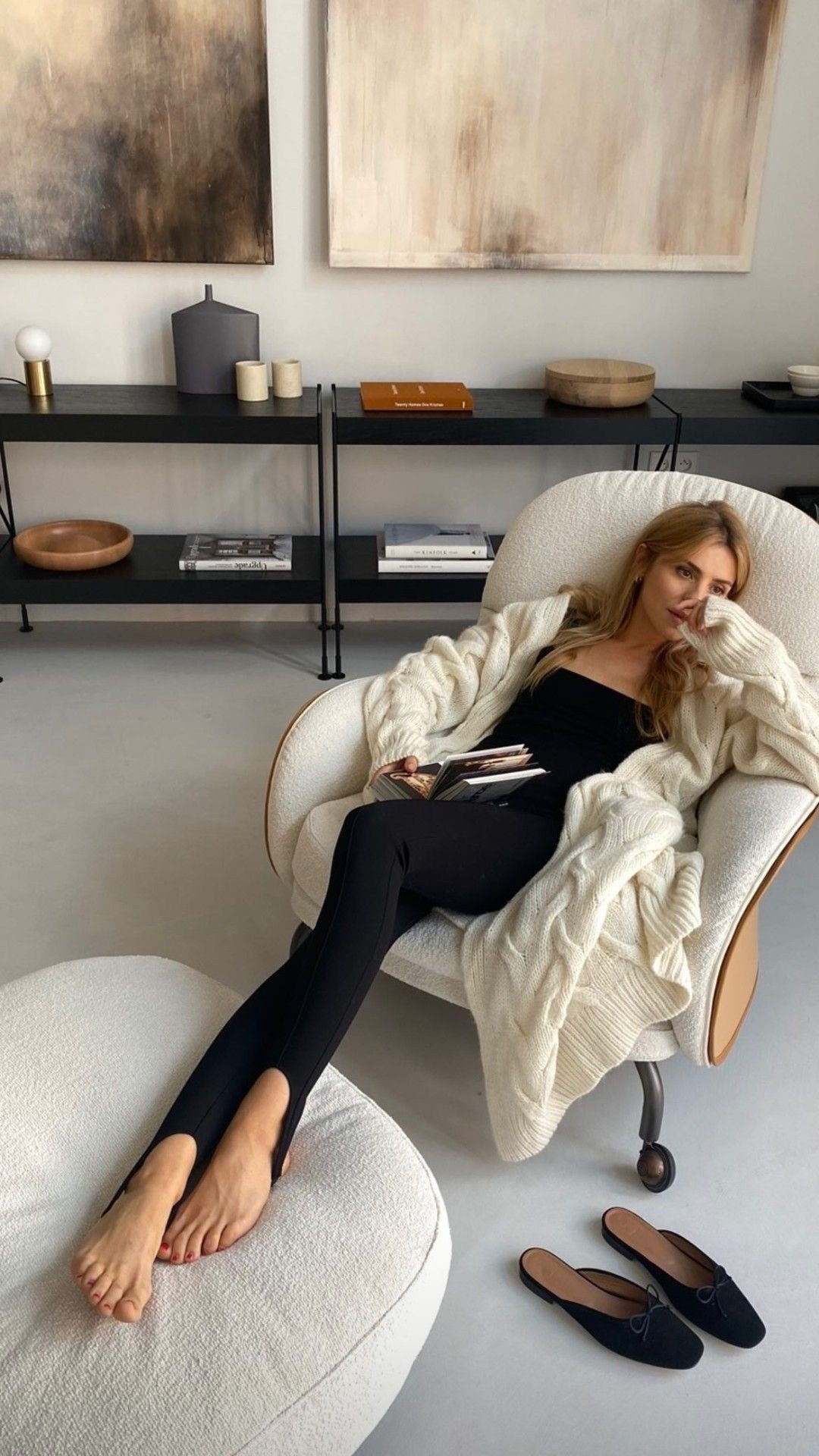 Стильная локация 2 этажа (Гостиная с панорамными окнами с видом на заснеженный двор, лестница, много воздуха, кухня и другие зоны.Образы от уютных домашних до элегантных платьев Образы, локация, макияж и укладка, трансфер до локации включены в стоимость